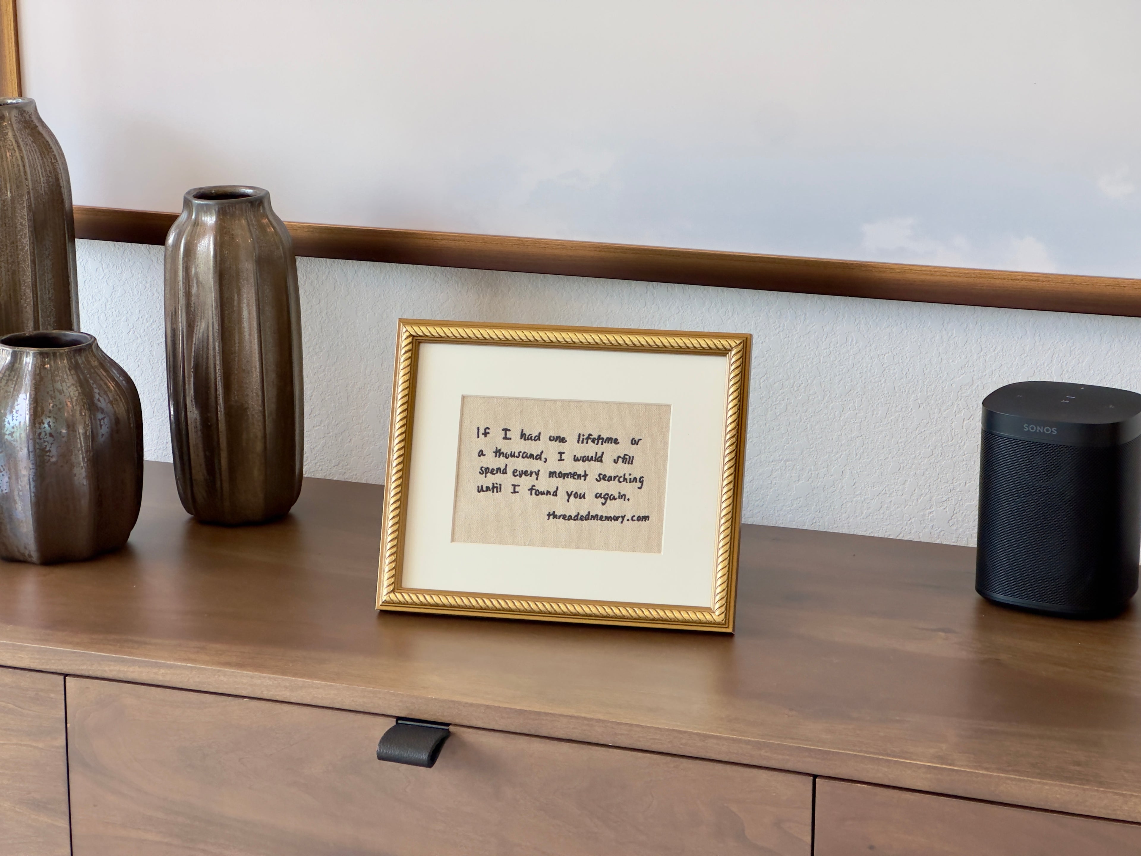 We custom embroider your loved one’s handwriting and frame it into a keepsake you’ll treasure for life.